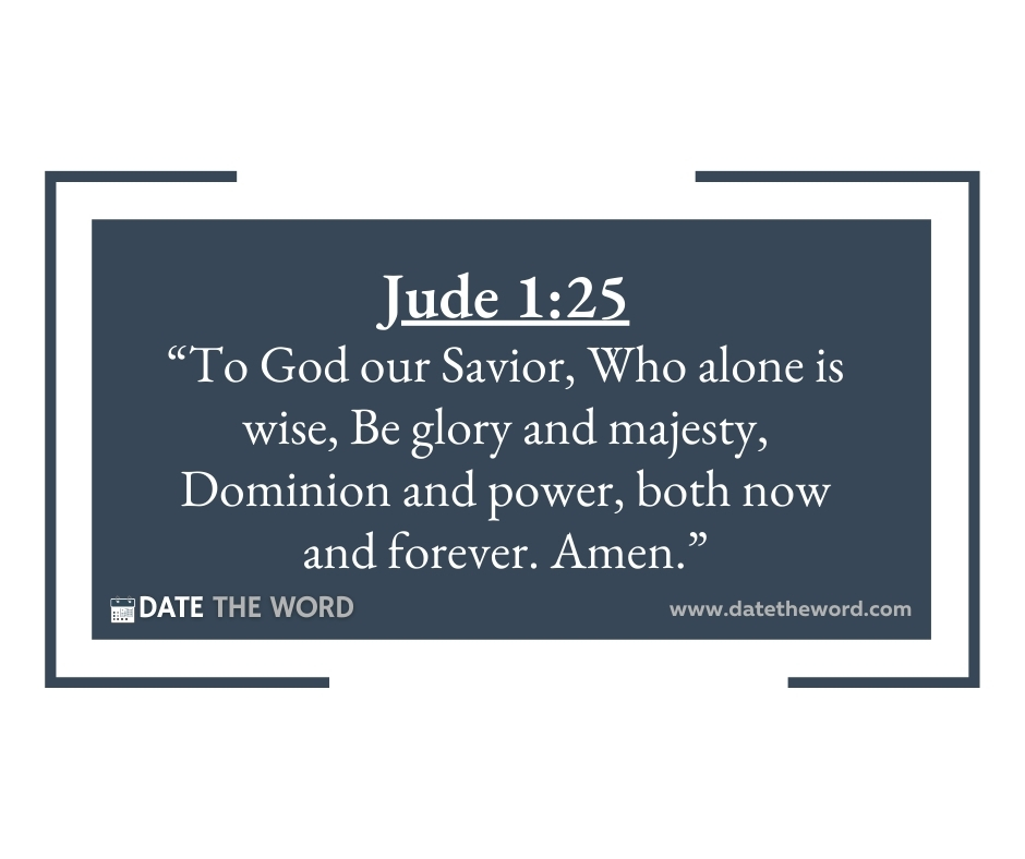 Jude 1:25 βTo God our Savior, Who alone is wise, Be glory and majesty, Dominion and power, both now and forever. Amen.β