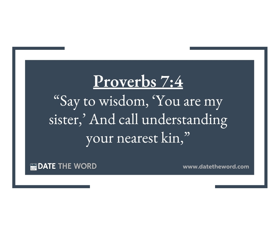Proverbs 7:4 “Say to wisdom, ‘You are my sister,’ And call understanding your nearest kin,”
