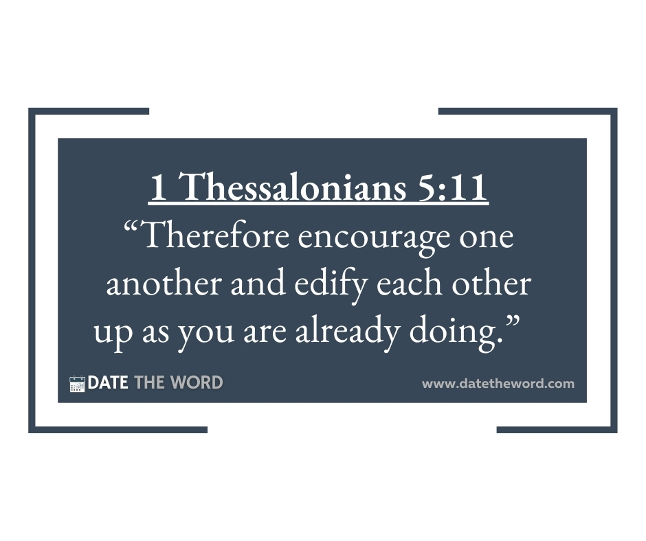 As you DATE 1 Thessalonians 5:11, ponder how valuable someone’s encouragement has been to you. What was said or done that kept you in the race that God has you running?
