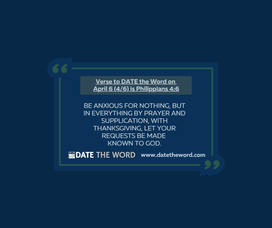 | DON’T WORRY ABOUT ANYTHING! PRAY ABOUT EVERYTHING! Life is, well, difficult and challenging. We can easily become consumed with daily concerns. Martha, for example, was so overwhelmed, worried, and concerned with getting a meal prepared for Jesus and friends, that she got all out of sorts with her sister, Mary, and even with her honored dinner guest, JESUS. Jesus told her that she was worried/anxious and troubled about many things.” Is it possible your life is being consumed by daily concerns like Martha’s? The Apostle Paul knew the reality of being anxious and addressed the subject head-on in Philippians 4:6. He literally gives a command to STOP BEING ANXIOUS. Why such a command? Well, to be anxious is to have a divided mind as one does not know WHAT TO DO. Instead of having this divided mind that paralyzes a person Paul says, pray. Instead of turning things over and over in your head turn things over to God. Instead of tossing and turning with all your cares and concerns cast your cares on the Lord. STOP WORRYING AND START PRAYING! As one probes the depths of this very practical verse there are two words that do present a challenge and they should be examined and yes, applied as we pray. Now, without a doubt, Paul wants us to take everything to God in prayer. He tells us not to be anxious. We are not to be worried. He tells us to make our request to God regarding the things that have us worried and anxious. Yet within this most wonderful and helpful verse are the words WITH THANKSGIVING. As we make our request it is to come “with thanksgiving.” WITH THANKSGIVING. Those two words are challenging as most of our prayers are for God to change something, something that we do not like. I am not saying all our prayers are this but if I am being honest and you are being honest a lot of praying takes place because we do not like the situation or the circumstances we are facing. To add to the prayer request THANKSGIVING seems to indicate an acceptance of the circumstance that we want God to change. And that just might be the purpose behind the Holy Spirit guiding Paul’s hands in writing WITH THANKSGIVING to this invitation to pray. As we give God thanks for the circumstance we want to be changed, we might find God wants to use the circumstance to change us. Offering thanksgiving with our request may just change our perspective and instead of asking God to get us out of the circumstance, we ask God to get us through the circumstance. Ultimately Philippians 4:6 is one of the great verses in the Bible that reminds us that God does want us to bring everything we are facing to Him in prayer. We don’t need to be living a life of fear and anxiety. We don’t have to have a divided mind. We don’t have to be consumed with cares, and concerns. Oh, by the way, just in case you were wondering what God does when we do bring these requests to Him we only have to look at verse 7. Philippians 4:7 says, “And the peace of God, which surpasses all understanding, will guard your hearts and minds through Christ Jesus.” To our prayers God beings PEACE. As Isaiah 26:3 says, “You will keep him in perfect peace, Whose mind is stayed on You, Because he trusts in You.” Do not forfeit the peace of God all because you do not take everything to God in prayer. Verse to DATE the Word on April 6 (4/6) is Philippians 4:6. Philippians 4:6 says, “Be anxious for nothing, but in everything by prayer and supplication, with thanksgiving, let your requests be made known to God.” DON’T WORRY ABOUT ANYTHING! PRAY ABOUT EVERYTHING! Continue Strong praying about everything, And remember to DATE the Word |