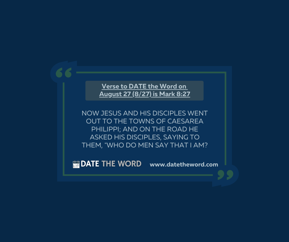 | Who is this JESUS CHRIST OF NAZARETH? When Jesus Christ walked the earth, many questions arose from many different people about WHO HE WAS. Religious leaders and political leaders wondered WHO WAS this man from Nazareth? John the Baptist said He was the Lamb of God. The Pharisees accused Him of being nothing more than a person born out of fornication. They even accused Him of being a person controlled by the devil. People He helped wondered if He could truly be the Christ. There were lots of interesting possibilities to the answer of WHO is this Jesus of Nazareth. Here in the 21st century we still have debates on who Jesus was and yes, is. Is He to be placed on the list of LEGENDARY fictional figures? Is He to be placed on the list of LEGENDARY historical figures? Is He to be viewed as nothing more than a LIAR as He proclaimed to be someone and something He wasn’t? Is He to be viewed as nothing more than a LUNATIC for making such outrageous statements about Himself? Or is He to be viewed as LORD of Lords and King of Kings, the one True Messiah who came to earth from heaven’s glories? As we consider WHO WAS JESUS maybe to get the best answer is to ask His Father. In Philippians 2:9 we read, “Therefore God also has highly exalted Him and given Him the name which is above every name, 10 that at the name of Jesus every knee should bow, of those in heaven, and of those on earth, and of those under the earth, 11 and that every tongue should confess that Jesus Christ is Lord, to the glory of God the Father.” Looks like the Father believes Jesus is LORD. Now, WHO DO YOU SAY JESUS IS? It is an answer you don’t want to get wrong! The verse to DATE the Word on August 27 (8/27) is Mark 8:27. Mark 8:27 says, “Now Jesus and His disciples went out to the towns of Caesarea Philippi; and on the road He asked His disciples, saying to them, “Who do men say that I am?” Continue Strong with the knowledge that Jesus is Lord, And remember to DATE the Word |
