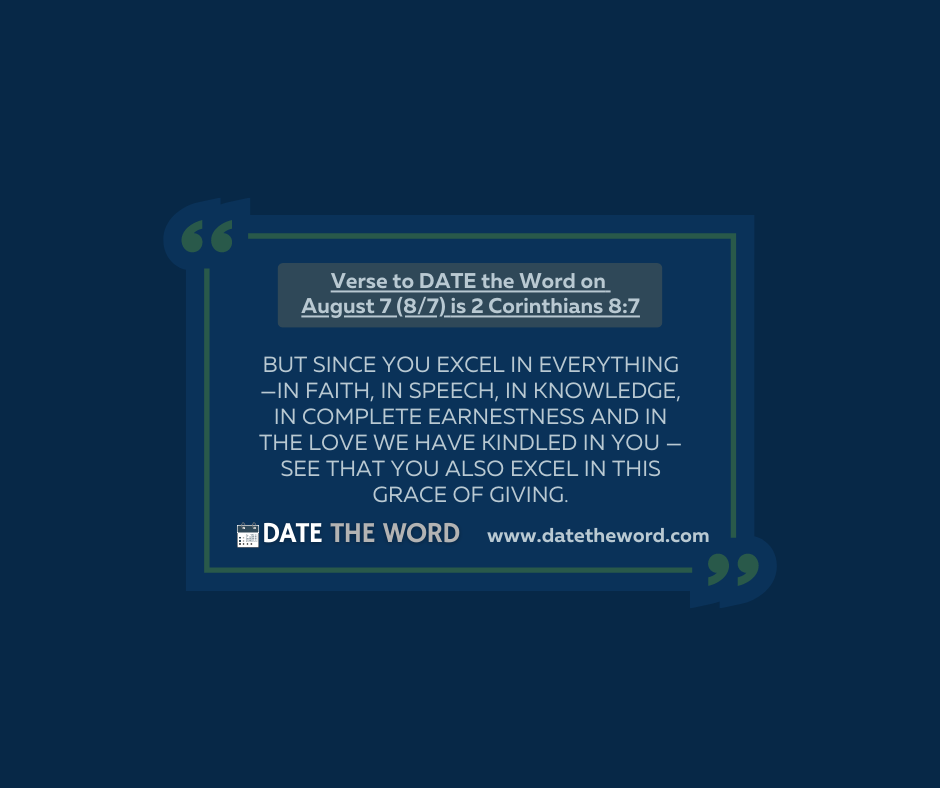 | “But since you excel in everything—in faith, in speech, in knowledge, in complete earnestness and in the love we have kindled in you —see that you also excel in this grace of giving.” – 2 Corinthians 8:7 (NIV) |