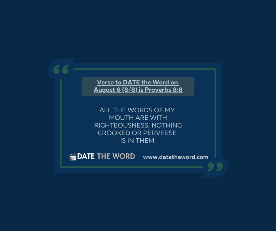 | God’s Wisdom is TRUSTWORTHY The book of Proverbs is known primarily for PROVIDING wisdom. It is the “go-to book” for getting heavenly insights for earthly living. To open Proverbs is to open a treasure chest filled with teachings to guide a person to make decisions that bring life to their life as opposed to making decisions that destroy their life. It is interesting though that as helpful as wisdom is to us wisdom itself believes it must make numerous appeals to the reader to get wisdom. From the first chapter up through chapter 9, Proverbs will be both revealing wisdom to the reader while purposefully pausing to appeal and, if you will, advertising heavily to the reader on why they should be acquiring and applying wisdom. As you come to Proverbs 8 you will find a chapter that is almost completely about the benefits of wisdom. Let us notice just a few of the verses starting at verse 1 to see how wisdom first appeals to us and then how she presents herself. Proverbs 8:1 (the appeal) Does not wisdom cry out, And understanding lift up her voice? 2 (the availability) She takes her stand on the top of the high hill, beside the way, where the paths meet. 3 She cries out by the gates, at the entry of the city, At the entrance of the doors: 4 “To you, O men, I call, and my voice is to the sons of men. 5 O you simple ones, understand prudence, And you fools, be of an understanding heart. 6 (her advertisement) Listen, for I will speak of excellent things, And from the opening of my lips will come right things; 7 For my mouth will speak truth; Wickedness is an abomination to my lips. 8 All the words of my mouth are with righteousness; Nothing crooked or perverse is in them. As we look at Proverbs 8:8, wisdom wants the reader to know that what you will receive is right and completely trustworthy. She tells of her words being spoken with righteousness and this connects her words to the character of God who is righteous. They are pure words. These are true words that can be trusted. A great way to understand Proverbs 8:8 is to restate that there is no FAKE NEWS with wisdom. There will be nothing misleading with wisdom. Wisdom says what it means and means what she says. When wisdom is applied it will work. The path that wisdom puts you on gets you to the correct destination. You can TRUST WISDOM. Wisdom not only has appealed to us it has gone the extra mile to explain and justify her very character so that you can TRUST what is said to you. The choice is now yours as to whether to acquire her with all diligence and then apply what she teaches. Our verse to DATE the Word on August 8 (8/8) is Proverbs 8:8. It says, “All the words of my mouth are with righteousness; Nothing crooked or perverse is in them.” Continue Strong knowing you can trust God’s wisdom, And remember to DATE the Word |