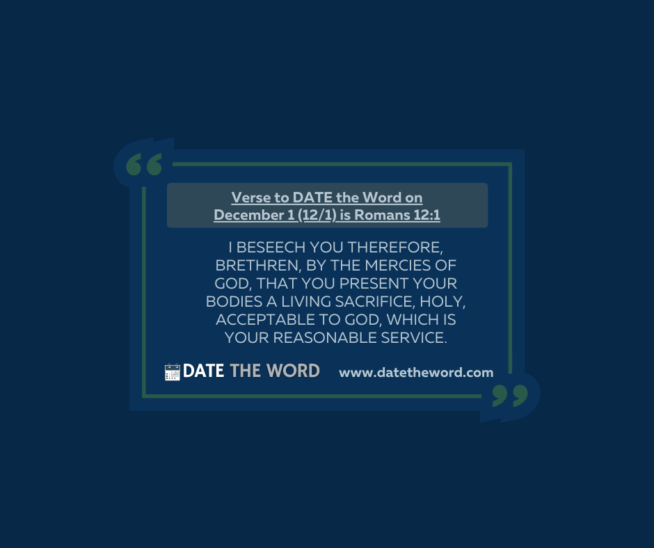 Verse to DATE the Word on December 1 (12/1) is Romans 12:1