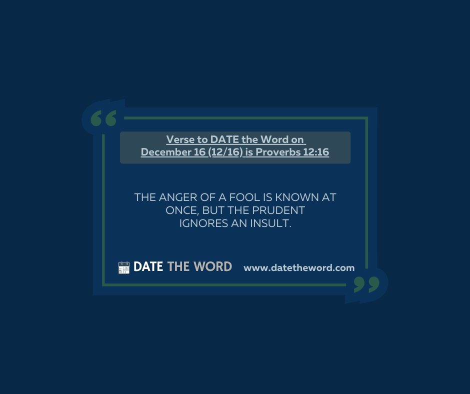 | “The anger of a fool is known at once, but the prudent ignores an insult.” – Proverbs 12:16 |