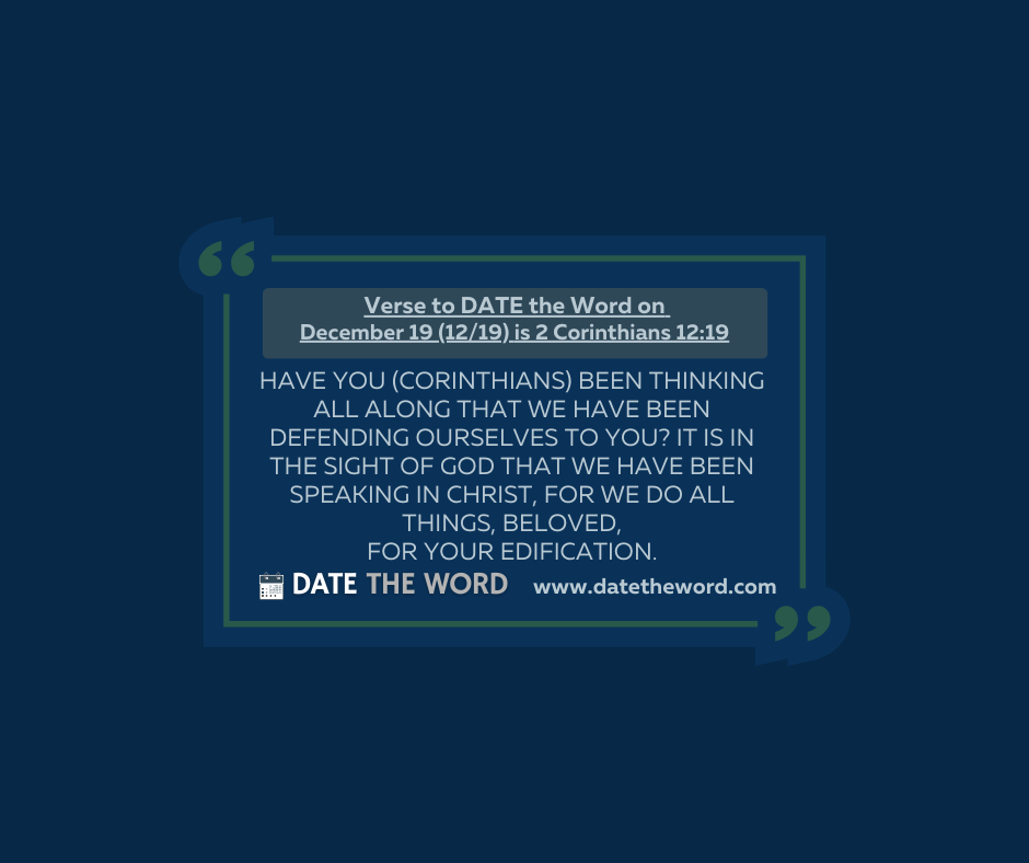 | “Have you (Corinthians) been thinking all along that we have been defending ourselves to you? It is in the sight of God that we have been speaking in Christ, for we do all things, beloved, for your edification.” – 2 Corinthians 12:19 |