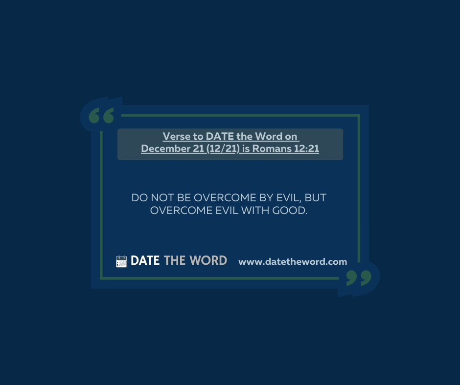 | A DIFFERENT RESPONSE TO EVIL As we encounter evil that is directed at us the Apostle Paul gives us two commands for responding and those 2 commands will bring about the most unusual of responses. First is the command to NOT BE OVERCOME BY EVIL. The second is to OVERCOME EVIL WITH GOOD. Let’s look closely at both because both are going to be needed. The verse begins with the strongest of admonishments to not allow EVIL to get the best of us. No matter what evil is done to us we do not let it DEFEAT US. Proverbs 24:10 “If you faint in the day of adversity, your strength is small.” Romans 8:37 tells us, “Yet in all these things we are more than conquerors through Him who loved us.” As we do not let evil drag us down to defeat we also do not let evil DRAG US DOWN to its level. Looking back at Romans 12:17 we are reminded that we are not, ABSOLUTELY NOT, to repay evil with evil. As the old saying goes, two WRONGS do not make a right. While wrong is being done we must continue to do RIGHT. For the believer to do evil betrays our testimony and gives evil a win. So, number 1, we will not be overcome by evil. We will not be defeated by it nor drawn down to its level. The second command is to TAKE POSITIVE ACTION and do GOOD to those who are doing evil TO YOU and others. One OVERCOMES (defeats, wins) against evil by DOING GOOD. It is helping the very person who is hurting you. It is praying for the very ones that are persecuting you. It is blessing the very one that is cursing you. It is giving a cup of cold water and a hot meal to the one who would like to starve you to death. It is being nice to the one who is mean. Are you getting the picture? You overcome evil by DOING GOOD!! And yes, I know what has been written is HARD. It is easy to give up when evil is done to you. It is easy to give in to doing evil when evil has been done to you. And it surely is hard to be nice to a mean person. Yet this is what we are called to do. We are called to be different in our response to evil by being OVERCOMERS OF EVIL, not overcome by evil. Verse to DATE the Word on December 21 (12/21) is Romans 12:21. It says, “Do not be overcome by evil, but overcome evil with good.” In a world filled with evil be different and do good to those doing evil. Continue Strong as an OVERCOMER of EVIL! And remember to DATE THE WORD |