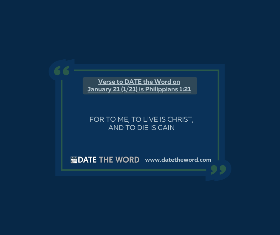 | Some verses to DATE the Word on January 21 (1/21) start with Philippians 1:21 “For to me, to live is Christ, and to die is gain.” |