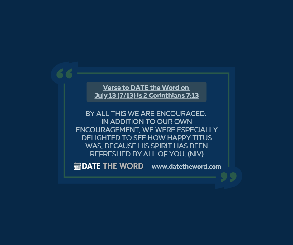 | “By all this we are encouraged. In addition to our own encouragement, we were especially delighted to see how happy Titus was, because his spirit has been refreshed by all of you.” (NIV) – 2 Corinthians 7:13 |