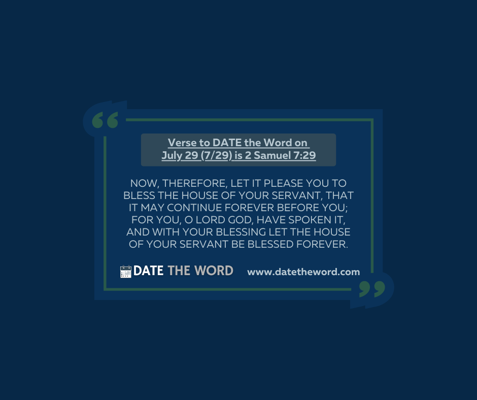 | “Now, therefore, let it please You to bless the house of Your servant, that it may continue forever before You; for You, O Lord GOD, have spoken it, and with Your blessing let the house of Your servant be blessed forever.” – 2 Samuel 7:29 |