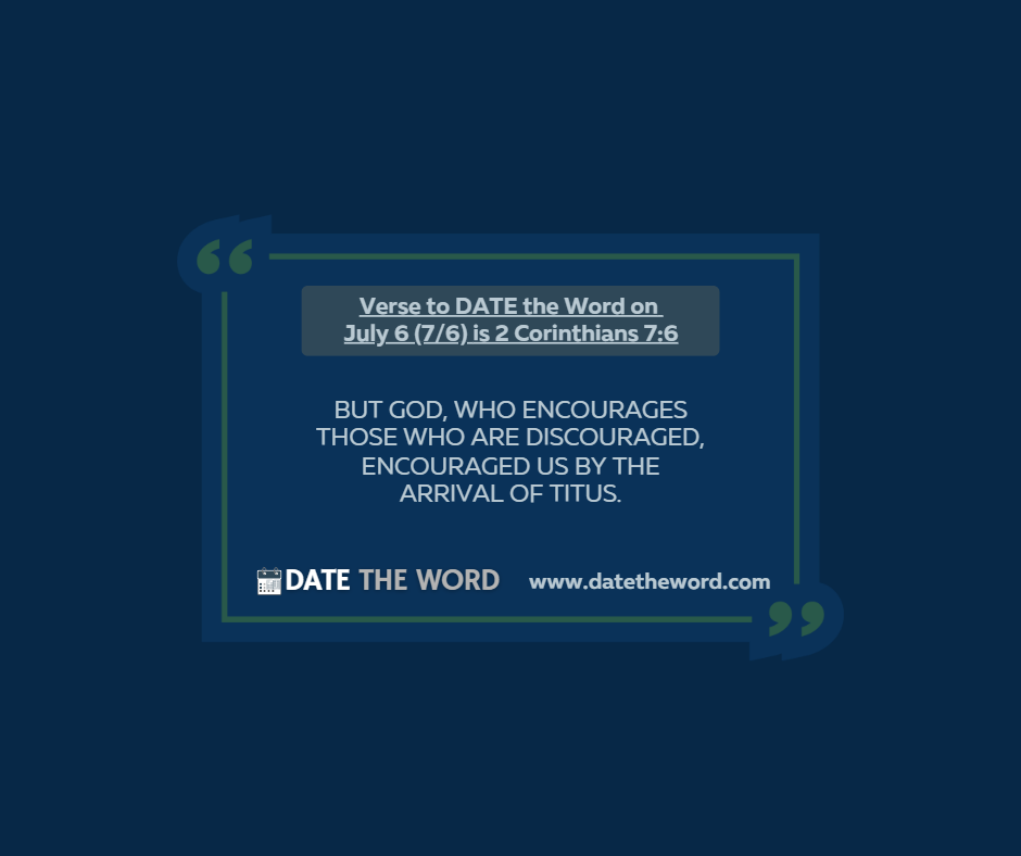 | THE NEED FOR AND THE POWER OF ENCOURAGEMENT! To get the fullest impact of this verse we need context. We need to understand WHO was discouraged, (other words could be used like downcast, deflated, feeling defeated) and needed encouragement. That person is none other than the Apostle Paul. Yes, the great apostle Paul was discouraged and was greatly in need of encouragement. Pay attention to his description of himself in 2 Corinthians 7:5, as he writes, “For indeed, when we came to Macedonia, our bodies had no rest, but we were troubled on every side. Outside were conflicts, inside were fears.” Did you read what the Apostle Paul said about his life? He has NO rest! Physically, he was exhausted. Troubled or afflicted! Emotionally, he was exhausted. Struggling with conflicts! Mentally, he was exhausted. Battling personal fear! Spiritually, he was exhausted. (I just described many of you as you seek to lead or work in Christian organizations and do ministry, didn’t I?) The work of the ministry is work, hard work! The work of the ministry has opposition. It is difficult and at times downright DISCOURAGING. Now with that background notice 2 Corinthians 7:6. Faced with discouragement and being down in the dumps, the apostle Paul starts this verse with GOD saying. “But GOD.” With those two words, the Apostle Paul is acknowledging that God was watching over him and God was working for him. It was God who sent TITUS to a discouraged Paul and Titus comes to ENCOURAGE. He comes to speak in to Paul the courage to keep on going, to never quit. Titus brought a good word in a difficult time that kept the Apostle Paul going. Do you need a TITUS? (I will answer for you.) Yes, you do! I pray you do have one. If you don’t have one then you should pray that God will send you one. We are all in need of a Titus touch! Do you need TO BE a TITUS? (I will answer for you.) YES, you do! I pray you will be one and you will be the answer to someone’s prayer. Make July 6 (7/6) a special day of encouragement! Be a TITUS to someone. Give them the Titus Touch! Verse to DATE the Word on July 6 (7/6) is 2 Corinthians 7:6. It says, “But God, who encourages those who are discouraged, encouraged us by the arrival of Titus.” Who has been a TITUS to you? Maybe today your Titus needs to hear a word of appreciation from you. Your encourager might need encouragement. Continue Strong receiving encouragement and giving encouragement, And remember to DATE the Word |