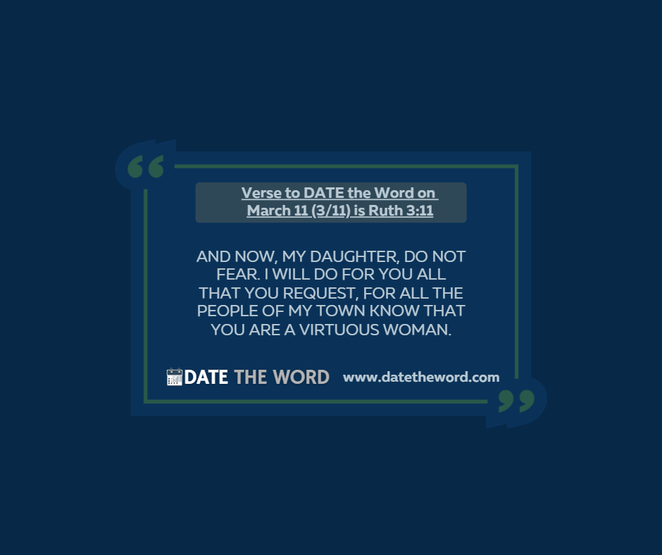 | Our verse to DATE the Word on March 11 (3/11) is Ruth 3:11 |