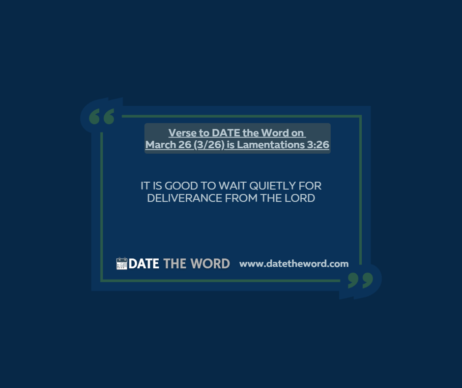 | Our verse to DATE the Word on March 26 (3/26) is Lamentations 3:26 |