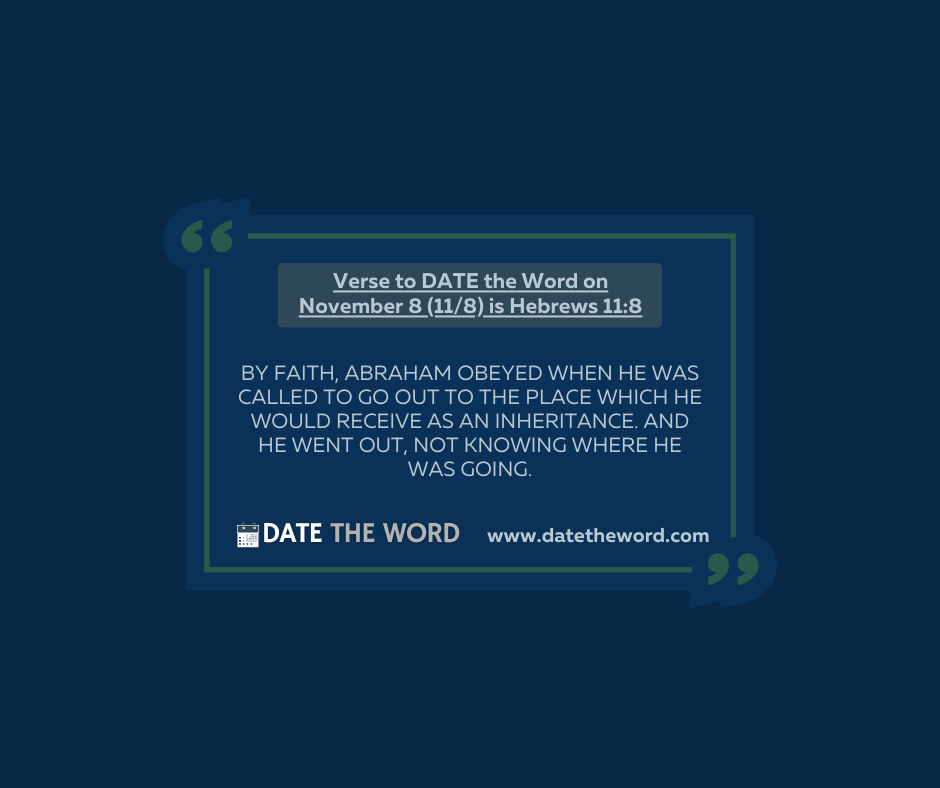 | Abraham WENT Abel worshiped by faith! Enoch walked by faith! Noah worked by faith! And now we read of Abraham, and Abraham WENT by faith! If you have gone on a long, (and even a short) road trip with children, you almost always get the question of WHERE ARE WE GOING? HOW MUCH LONGER TILL WE GET THERE? And the classic, ARE WE THERE YET? Well, imagine what it would be like to travel with Abraham. The Bible says he WENT out NOT KNOWING WHERE HE WAS GOING. As he is asked “Where we are going” he only could say, “I don’t know.” Can you imagine the question ARE WE THERE YET being asked multiple times and Abraham shaking his head and saying “NO!!” How about the classic HOW MUCH LONGER ABRAHAM and hearing “I DON’T KNOW!” When we look at Abraham in the Hall of Faith, we learn he WENT by faith! God called Abraham to leave the familiar and go to the UNKOWN. Even without knowing VITAL details, Abraham WENT! So let me ask you, how much information do you have to have to obey God? Friends, when it comes to living a life of FAITH, you are going to have to work through the challenge of NOT KNOWING ALL THE DETAILS. As a matter of fact there just might only be very few details. All Abraham had was God had said GO. He did not know the details of the exact location he was to go to. He did not get the details of how long it would take to get there. He did not get the details of what he would do when he got there. All had was God said GO! I do want you to consider Abraham’s faith. Even though Abraham DID NOT KNOW WHERE HE WAS GOING, he DID KNOW that GOD KNEW where he was to go. With the knowledge that GOD KNEW Abraham then BY FAITH went! Does your spiritual journey have moments of knowing but not knowing? You KNOW God has told you to do something but the details are really fuzzy. You find yourself having to say I don’t know to a whole of questions. But then you say I DO KNOW WHO DOES KNOW! I hope you have had, are having, and will have these moments on your faith journey. And when they happen, I hope you will recall that Abraham WENT! Make no mistake that doing what God calls you to do will not include all the details. You are going to have to be comfortable with NOT KNOWING BUT KNOWING! You are going to have to be comfortable not knowing the details, but KNOWING the ONE who does know the details. When you GO and DO what He has said in these moments you will be able to say BY FAITH you WENT! Verse to DATE the Word on November 8 (11/8) is Hebrews 11:8. It says, “By faith, Abraham obeyed when he was called to go out to the place which he would receive as an inheritance. And he went out, not knowing where he was going.” My prayer for you is that when God says GO your testimony will be you WENT! Continue Strong Going by Faith, And remember to DATE THE WORD |
