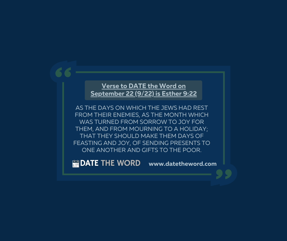 | “As the days on which the Jews had rest from their enemies, as the month which was turned from sorrow to joy for them, and from mourning to a holiday; that they should make them days of feasting and joy, of sending presents to one another and gifts to the poor.” – Esther 9:22 |
