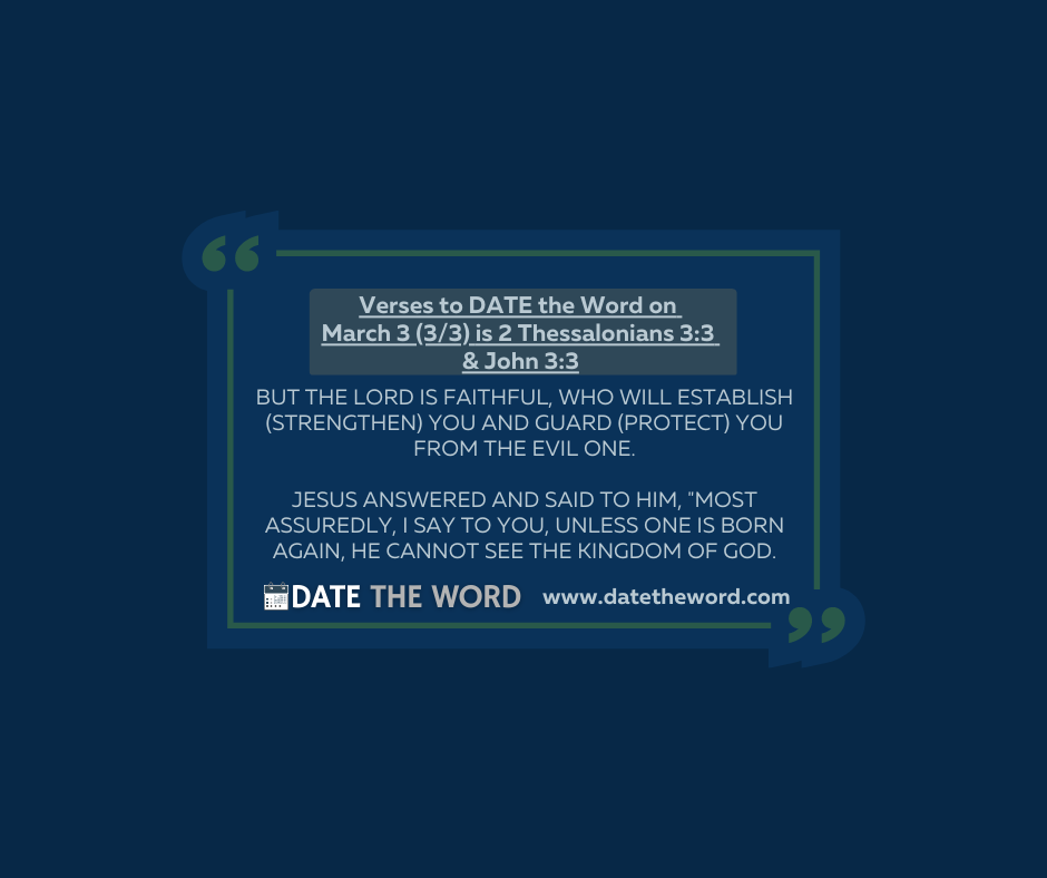 | Our verses to DATE the Word on March 3 (3/3/) is 2 Thessalonians 3:3. 2 Thessalonians 3:3 |