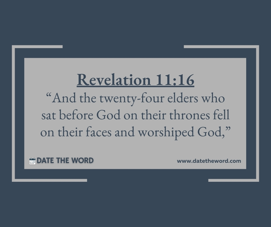 Revelation 11:16 “And the twenty-four elders who sat before God on their thrones fell on their faces and worshiped God,”