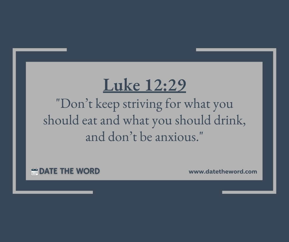 Luke 12:29 “Don’t keep striving for what you should eat and what you should drink, and don’t be anxious.”