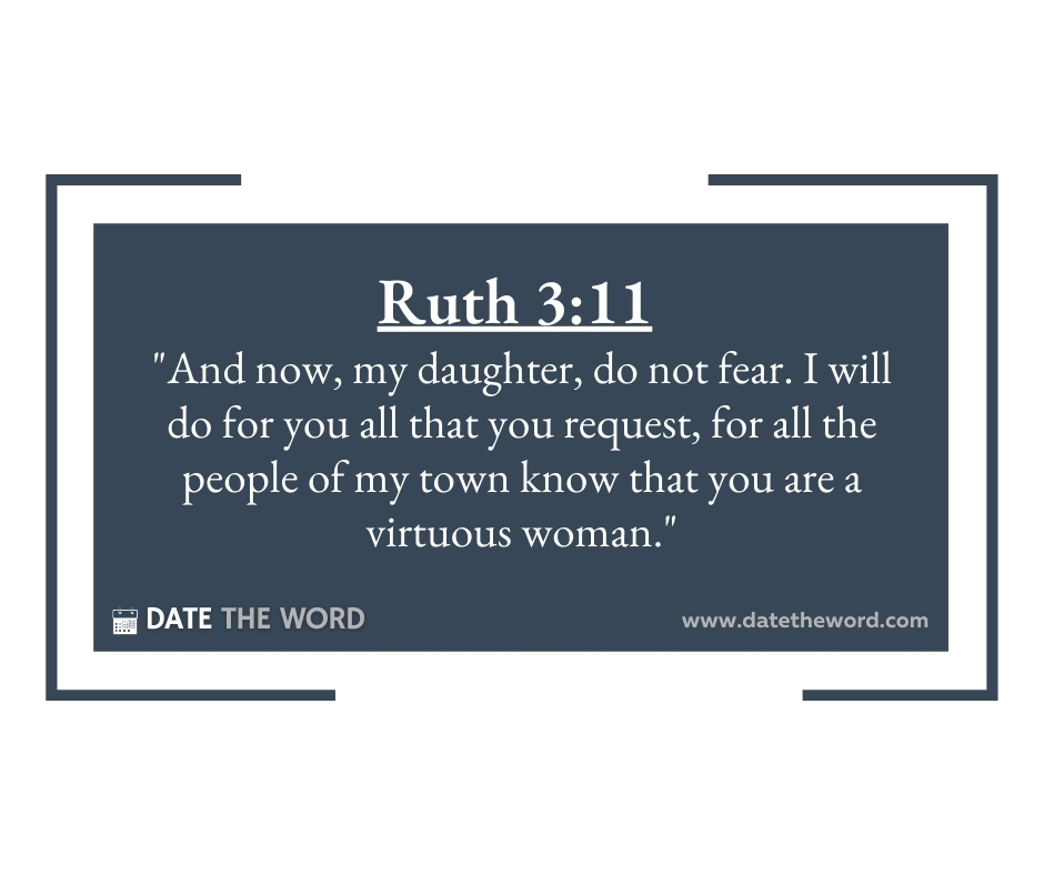 Ruth 3:11 “And now, my daughter, do not fear. I will do for you all that you request, for all the people of my town know that you are a virtuous woman.”
