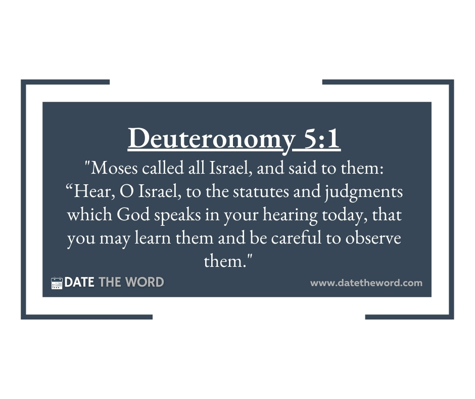 Deuteronomy 5:1 “Moses called all Israel, and said to them: “Hear, O Israel, to the statutes and judgments which God speaks in your hearing today, that you may learn them and be careful to observe them.”