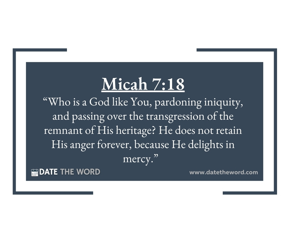 Micah 7:18 “Who is a God like You, pardoning iniquity, and passing over the transgression of the remnant of His heritage? He does not retain His anger forever, because He delights in mercy.”