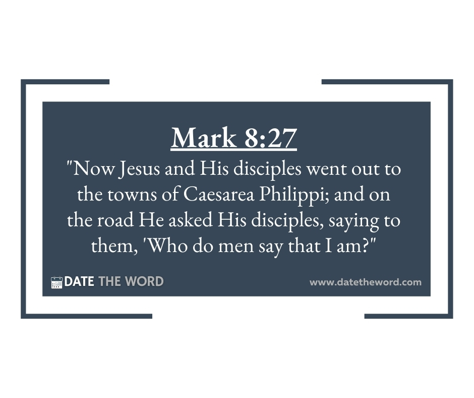 Mark 8:27 “Now Jesus and His disciples went out to the towns of Caesarea Philippi; and on the road He asked His disciples, saying to them, ‘Who do men say that I am?”
