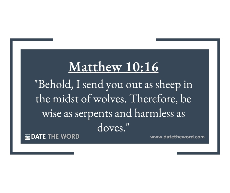 Matthew 10:16 “Behold, I send you out as sheep in the midst of wolves. Therefore, be wise as serpents and harmless as doves.”