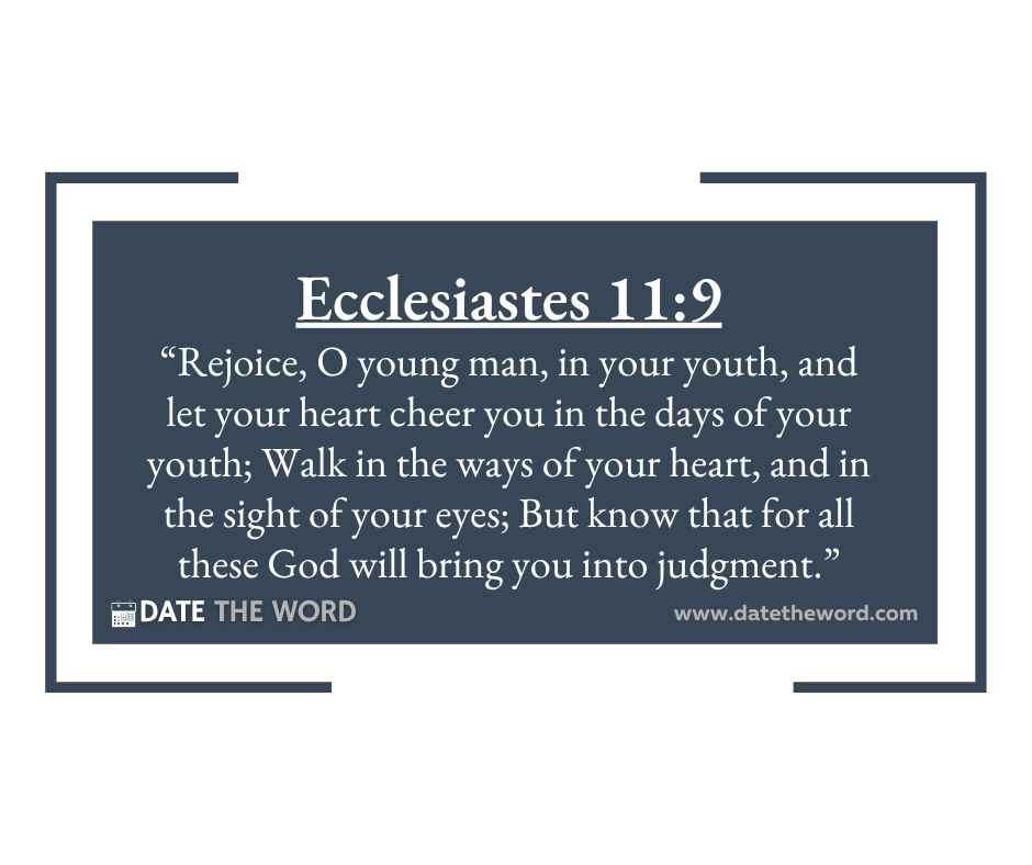 Ecclesiastes 11:9 “Rejoice, O young man, in your youth, and let your heart cheer you in the days of your youth; Walk in the ways of your heart, and in the sight of your eyes; But know that for all these God will bring you into judgment.”