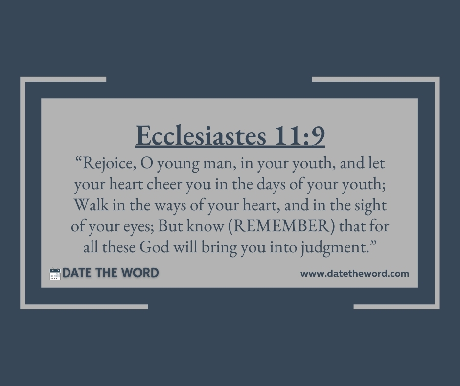 Ecclesiastes 11:9 “Rejoice, O young man, in your youth, and let your heart cheer you in the days of your youth; Walk in the ways of your heart, and in the sight of your eyes; But know (REMEMBER) that for all these God will bring you into judgment.”